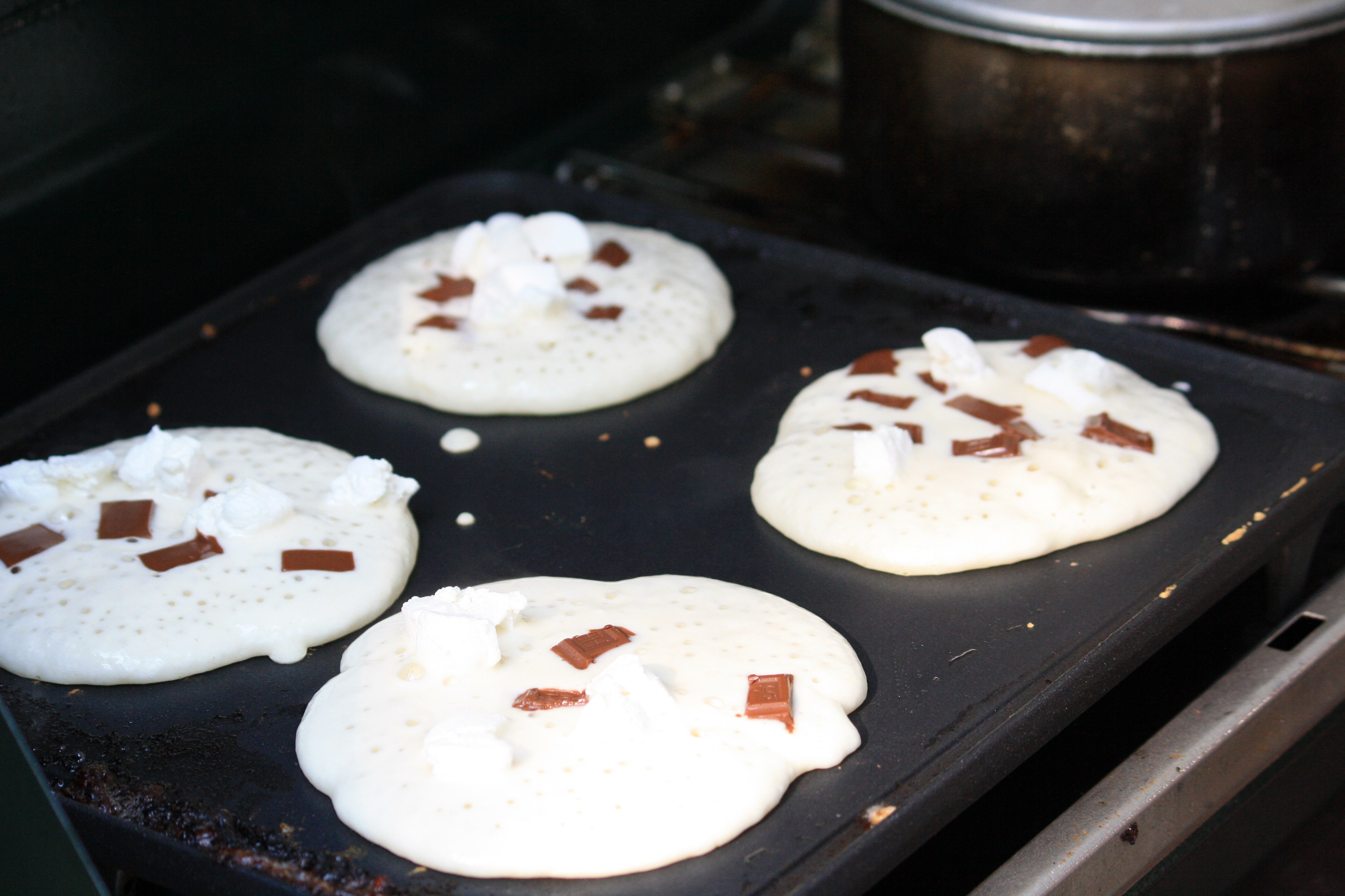 Try these quick and easy Smores Pancakes for a tasty breakfast whether you are at home or camping.